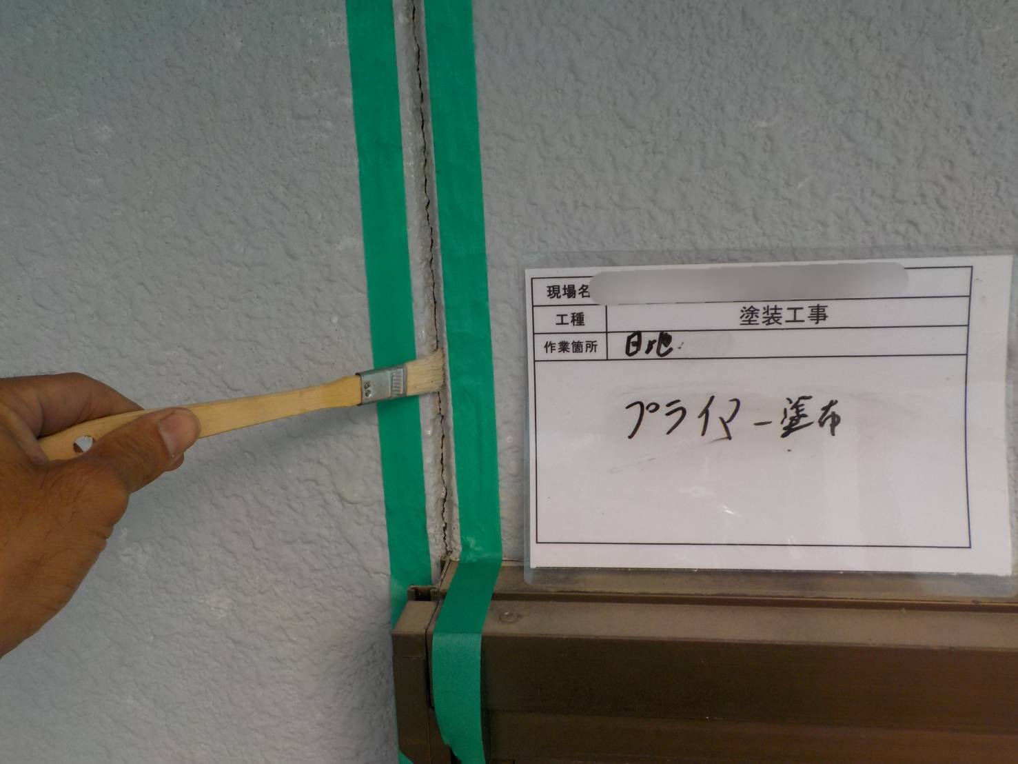 【シールプライマー塗布】シールの密着を良くするために専用のプライマーを塗っています。