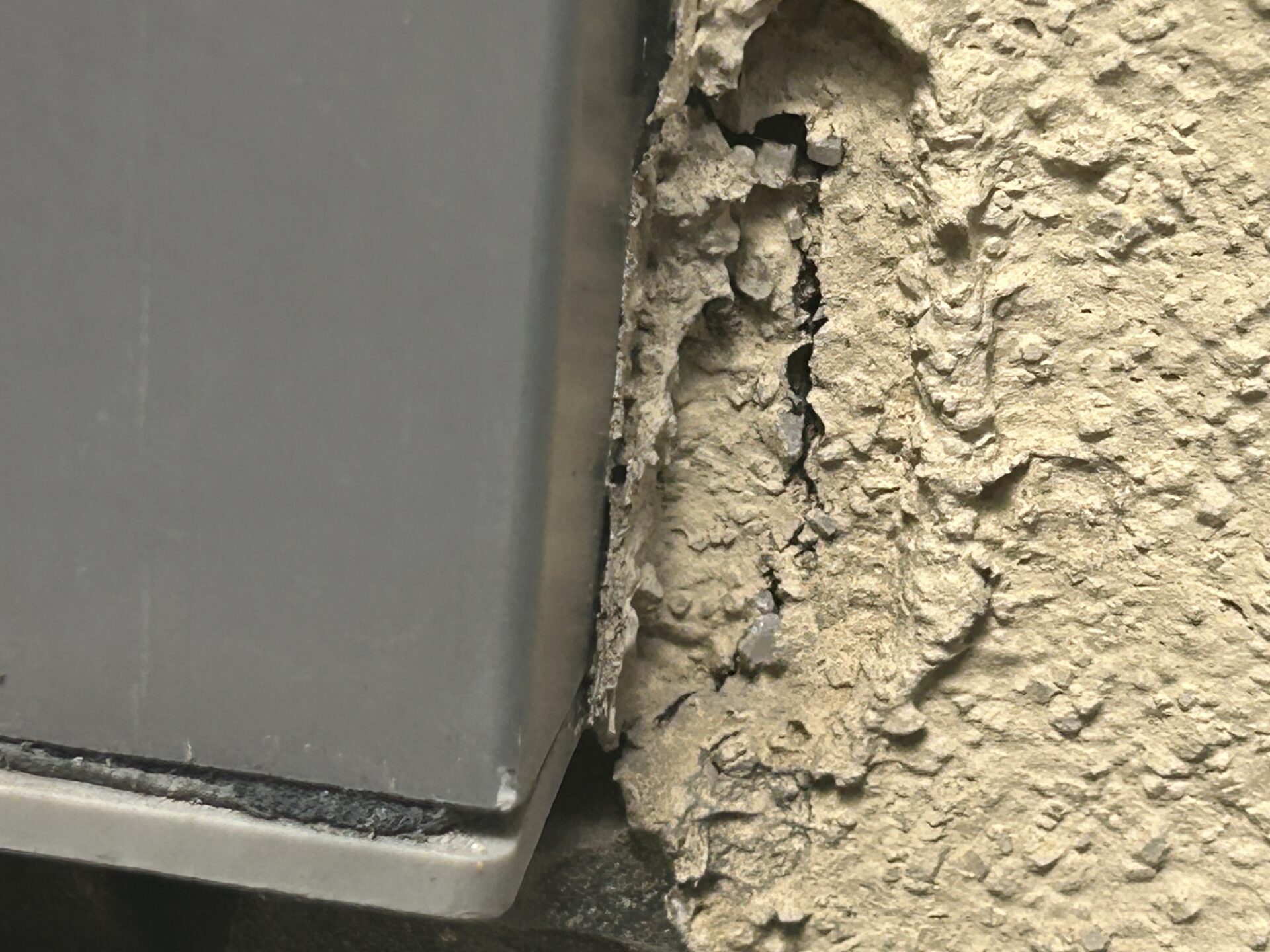 サッシ廻りひび割れ クラックも大きな割れになる前に補修塗り替えがおすすめです。雨漏りにつながるのでお気をつけてください