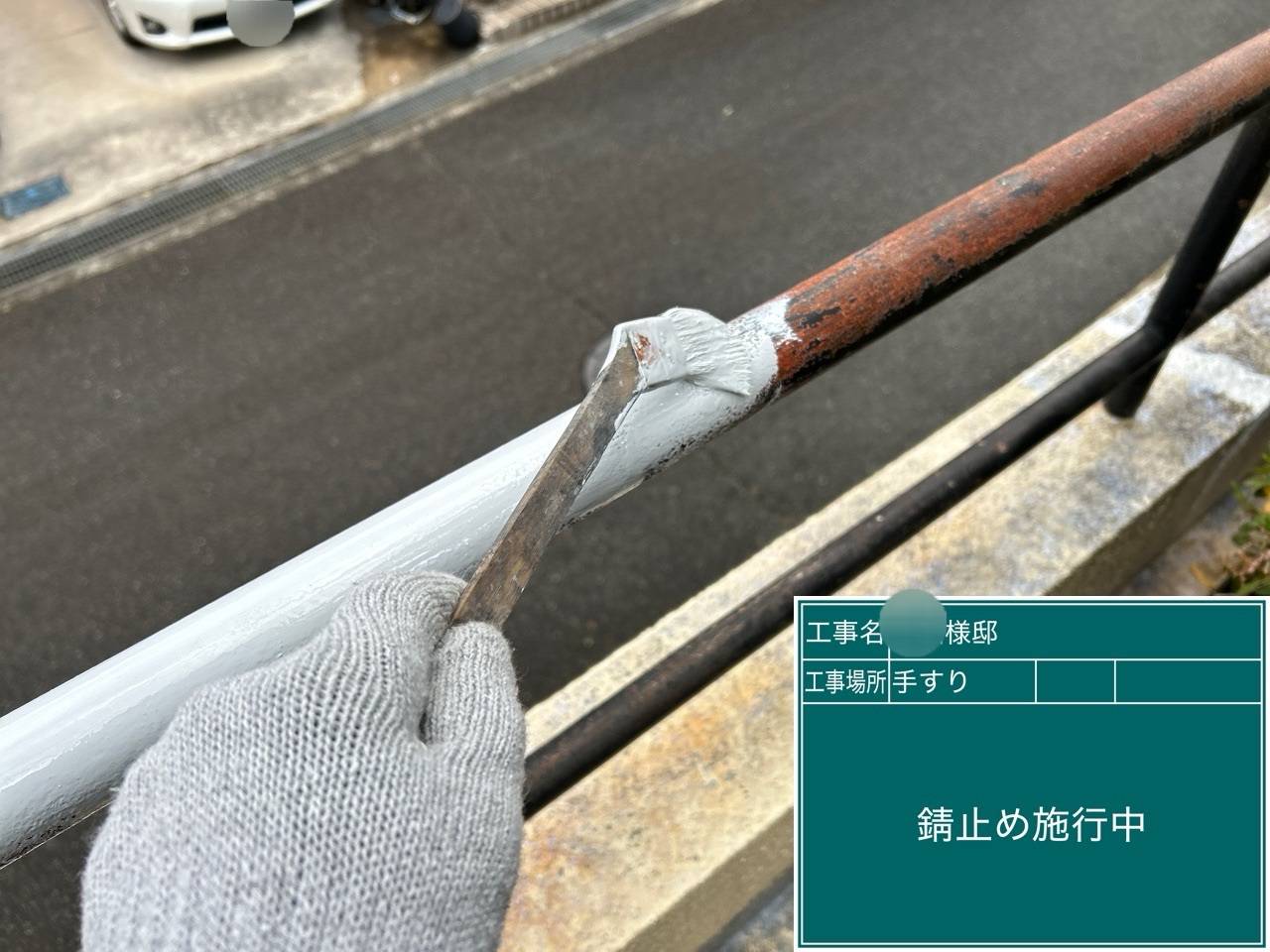 錆止め 鉄部部には錆止め塗料をしっかし塗り、上塗りをしていきます。