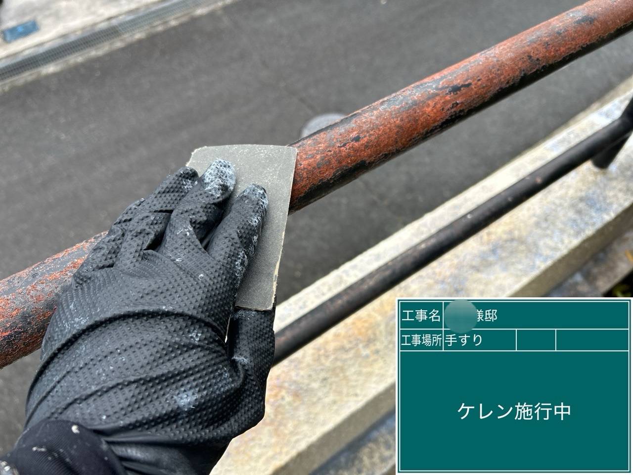 ケレン清掃 下地処理の工程です。密着を高める為の下地処理です。