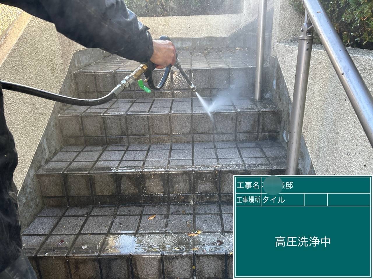 高圧洗浄完了、階段も綺麗になりました。